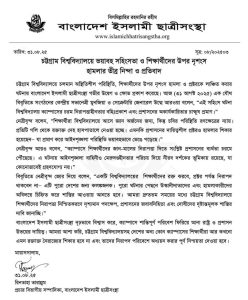 বাংলাদেশ ইসলামী ছাত্রীসংস্থা দৃঢ়ভাবে বিশ্বাস করে, ক্যাম্পাসে শান্তিপূর্ণ পরিবেশ ফিরিয়ে আনা রাষ্ট্র ও প্রশাসন উভয়ের দায়িত্ব। আমরা আশা করি, চট্টগ্রাম বিশ্ববিদ্যালয়সহ দেশের অন্য কোন ক্যাম্পাসের শিক্ষার্থীরা আর কখনো এমন রক্তাক্ত নৈরাজ্যের শিকার হবে না এবং তাদের নিরাপদ পরিবেশে অধ্যয়ন করার পূর্ণ নিশ্চয়তা দেওয়া হবে।
