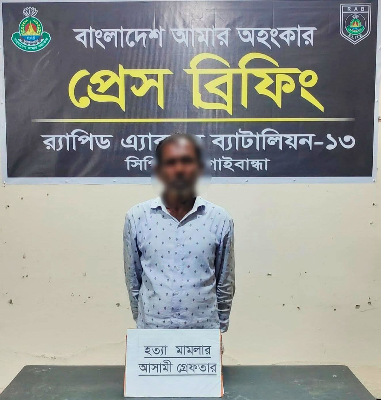 গাইবান্ধায় বিয়ে বাড়িতে মাংস কম দেওয়া কে কেন্দ্র করে হত্যা মামলার আসামি গোলজার রহমান(৪৫) কে গ্রেফতার করেছে র‍্যাব ১৩। গত