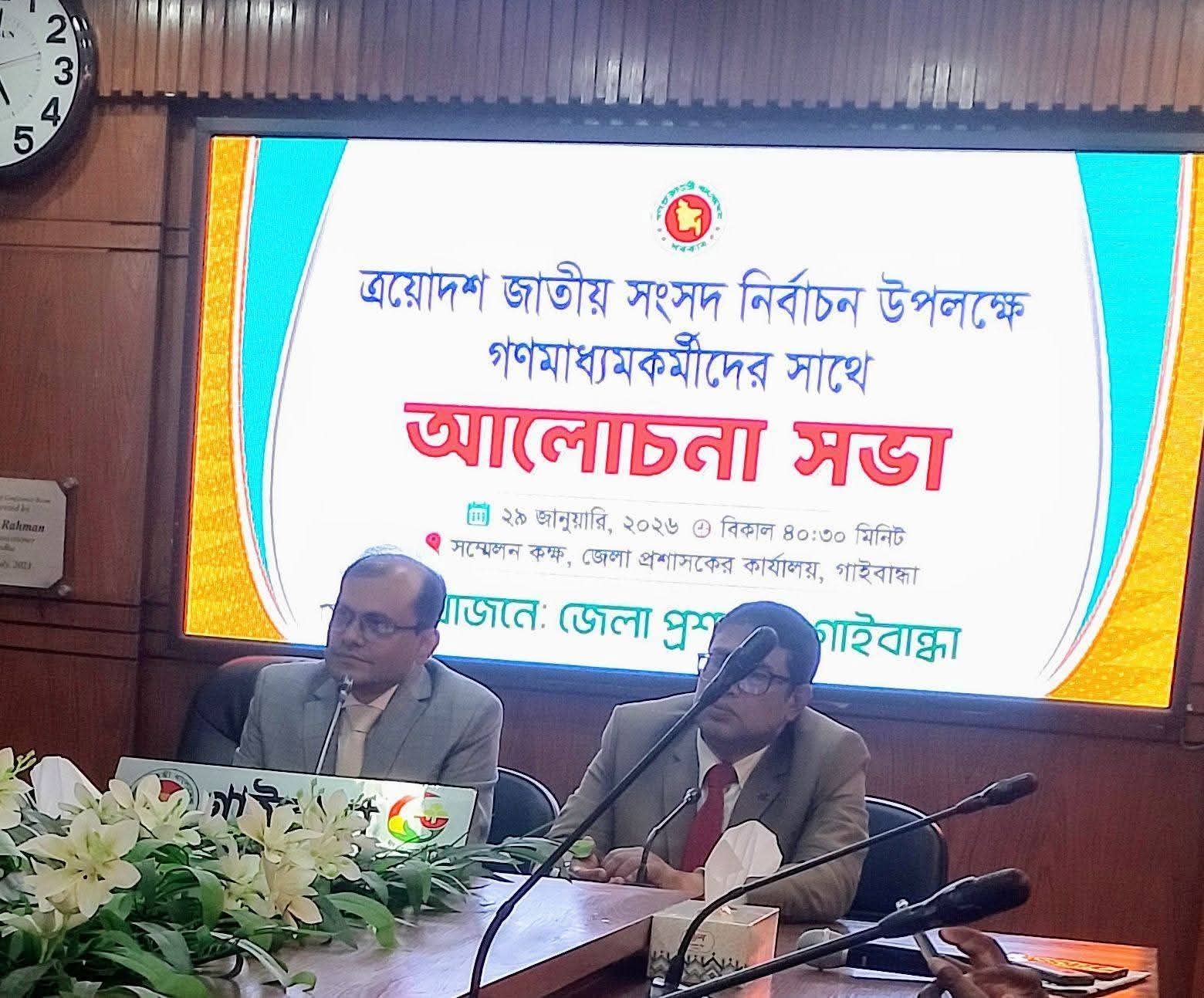 গাইবান্ধায় নির্বাচন উপলক্ষে গণমাধ্যম কর্মীদের সাথে আলোচনা সভা