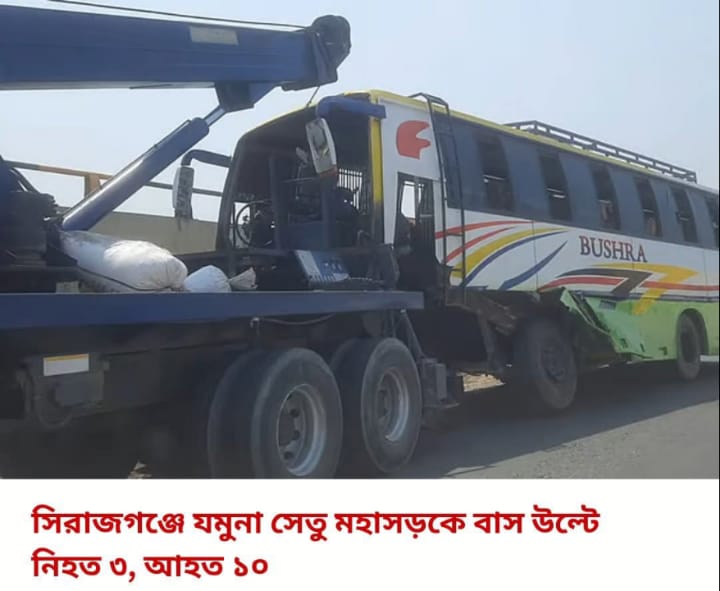 রায়গঞ্জে বাস উল্টে ৩ জন নিহত আহত ১০জন
