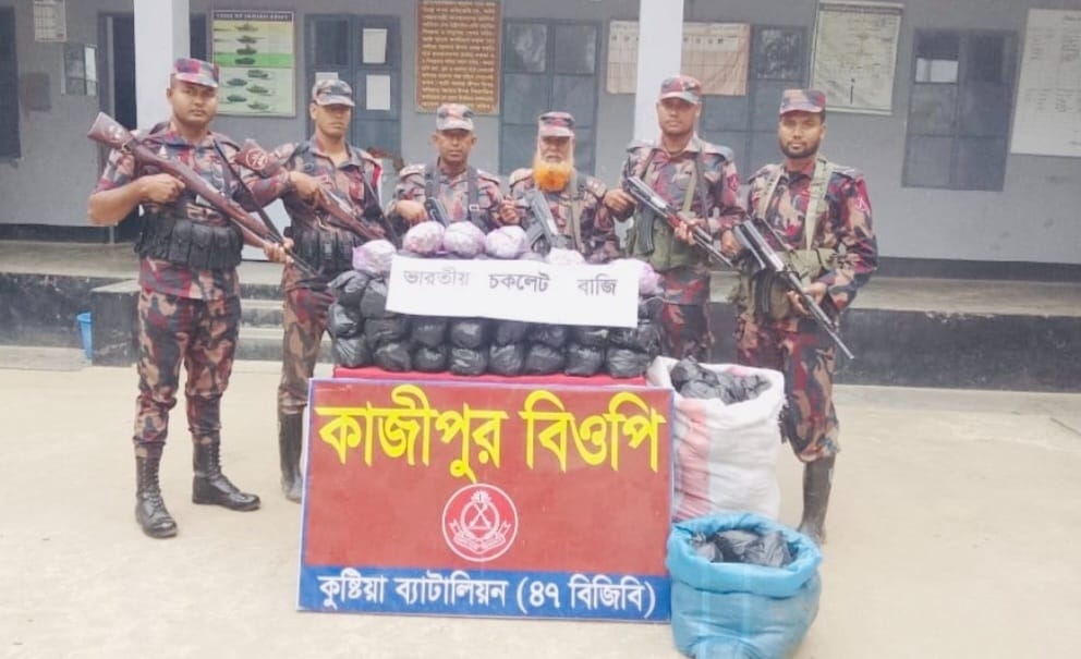 কুষ্টিয়া সীমান্তে পৃথক দুইটি স্থানে বিশেষ অভিযান চালিয়ে বিপুল পরিমান ভারতীয় চকলেট বাজি ও মদ উদ্ধার করেছে বডার গার্ড বাংলাদেশ(বিজিবি)।