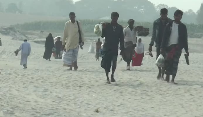 গাইবান্ধার চরাঞ্চলের মানুষের বাড়ি ফেরা যেন এক কঠিন বাস্তবতার ছবি। কাজ শেষে বাড়ি ফিরতে হলে অনেককেই নদীর চরজেগে ওঠা বিশাল