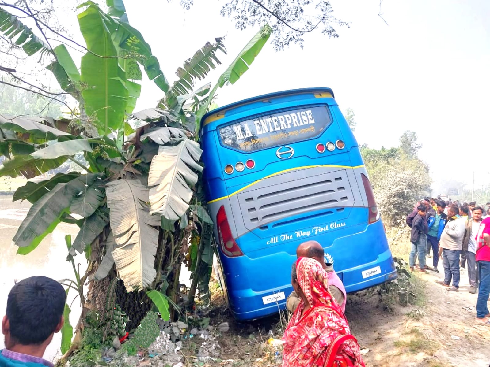 দিনাজপুরে নিয়ন্ত্রণ হারিয়ে যাত্রীবাহী বাস খাদে
