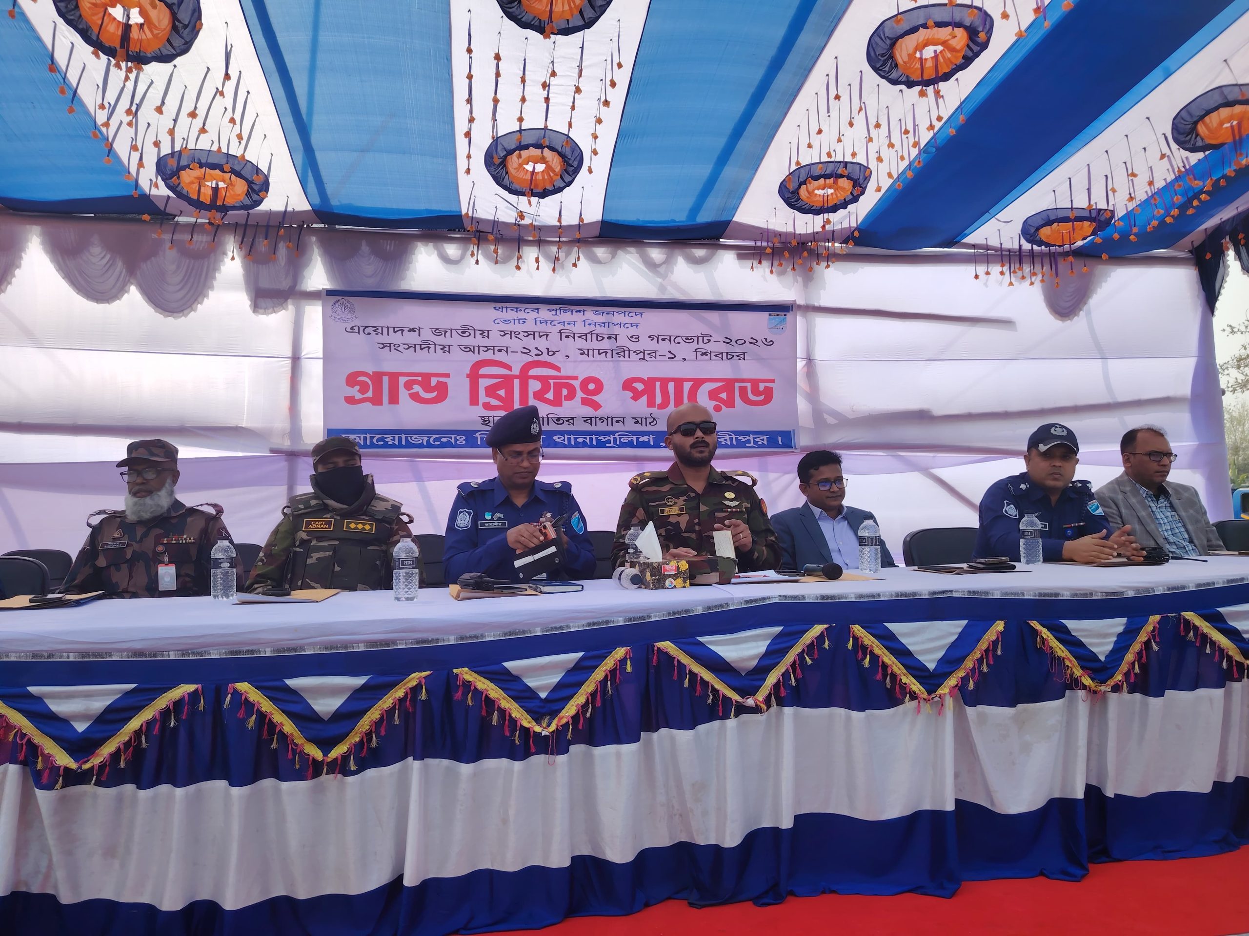 শিবচরে নির্বাচনকে ঘিরে জাঁকজমকপূর্ণ গ্র্যান্ড ব্রিফিং প্যারেড অনুষ্ঠিত